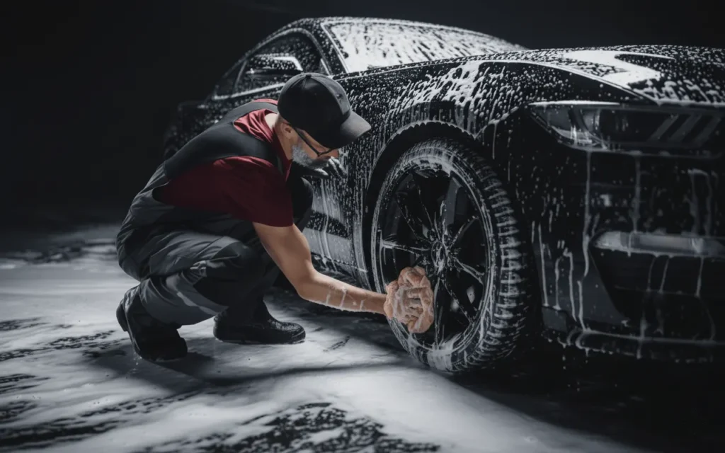Wheel cleaning and tire shine for a polished look